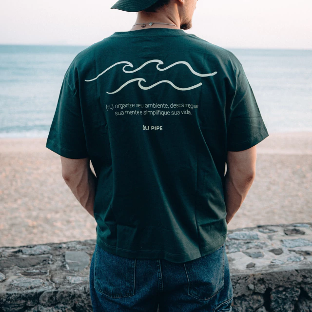 • Estampa costas: arte exclusiva OLI PIPE + definição do conceito “Live Simply”