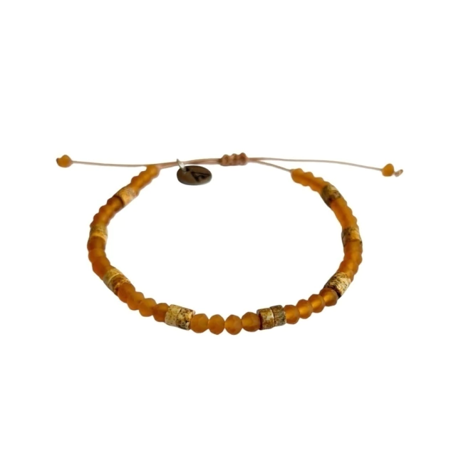 Pulseira de cristais em resina com detalhes em pedra jaspe madeira.