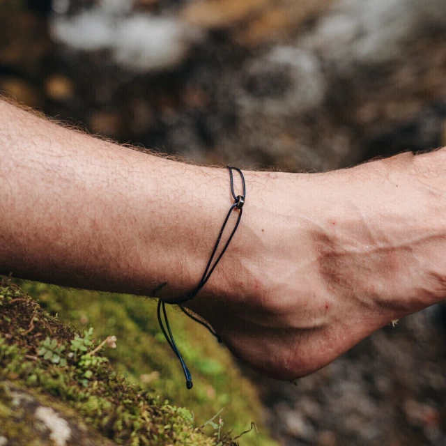 Tornozeleira feita de cordão sintético e pingente de pedra hematita